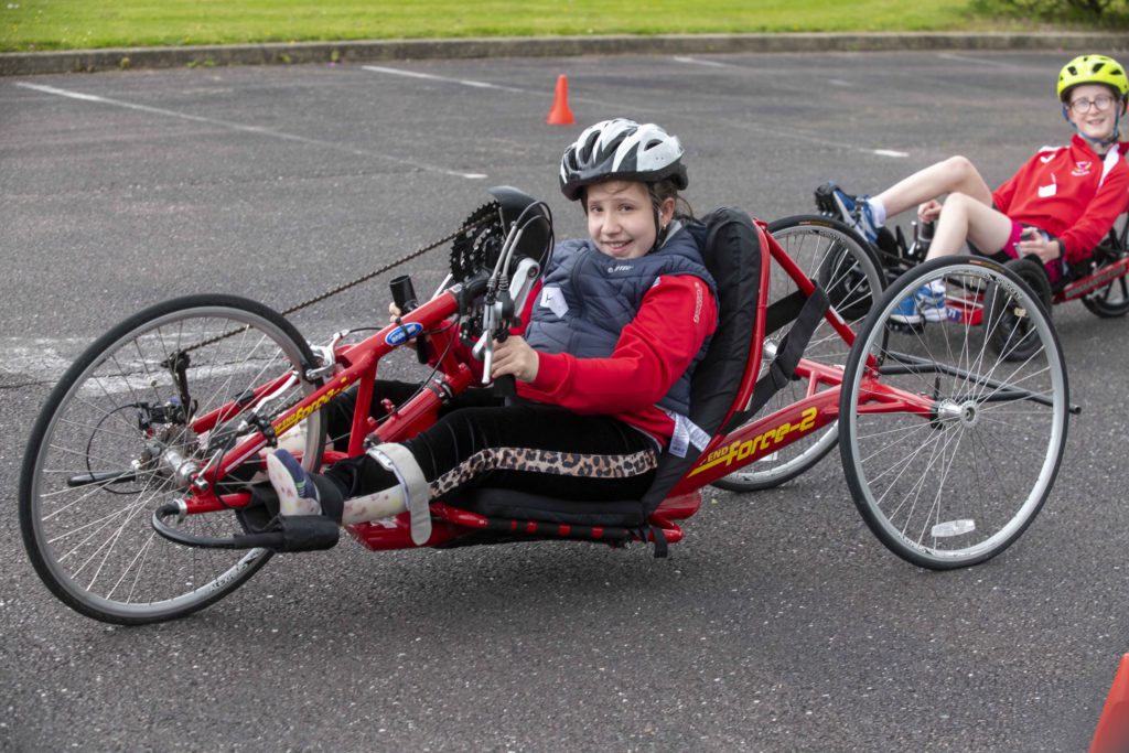 These budding athletes started the session with some bike skills, including slalom cycling to help improve wheelchair & bike balance and coordination and limboing to practice wheelchair and bike control.