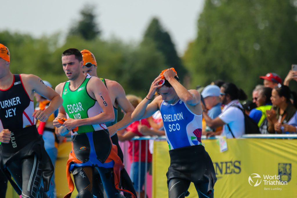James Edgar was ninth out of the water, just 8 seconds from the lead swimmer. Edgar got into the main chase pack who worked together throughout to close the gap to the leaders.