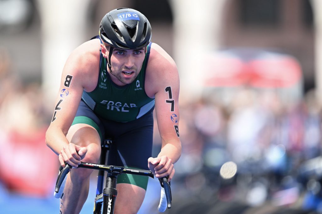 National Triathlon Centre athletes Senan McDonnell and Mathys Bocquet were the first in action on Saturday morning in the Junior Men’s race, after qualifying through their selection race in June at Schull Centra Fastnet Triathlon in Cork with podium finishes. McDonnell was also building on his P17 finish at the European Junior Cup in Wels last month, while Bocquet carried international momentum from Caorle (19th) and Holten (23rd).