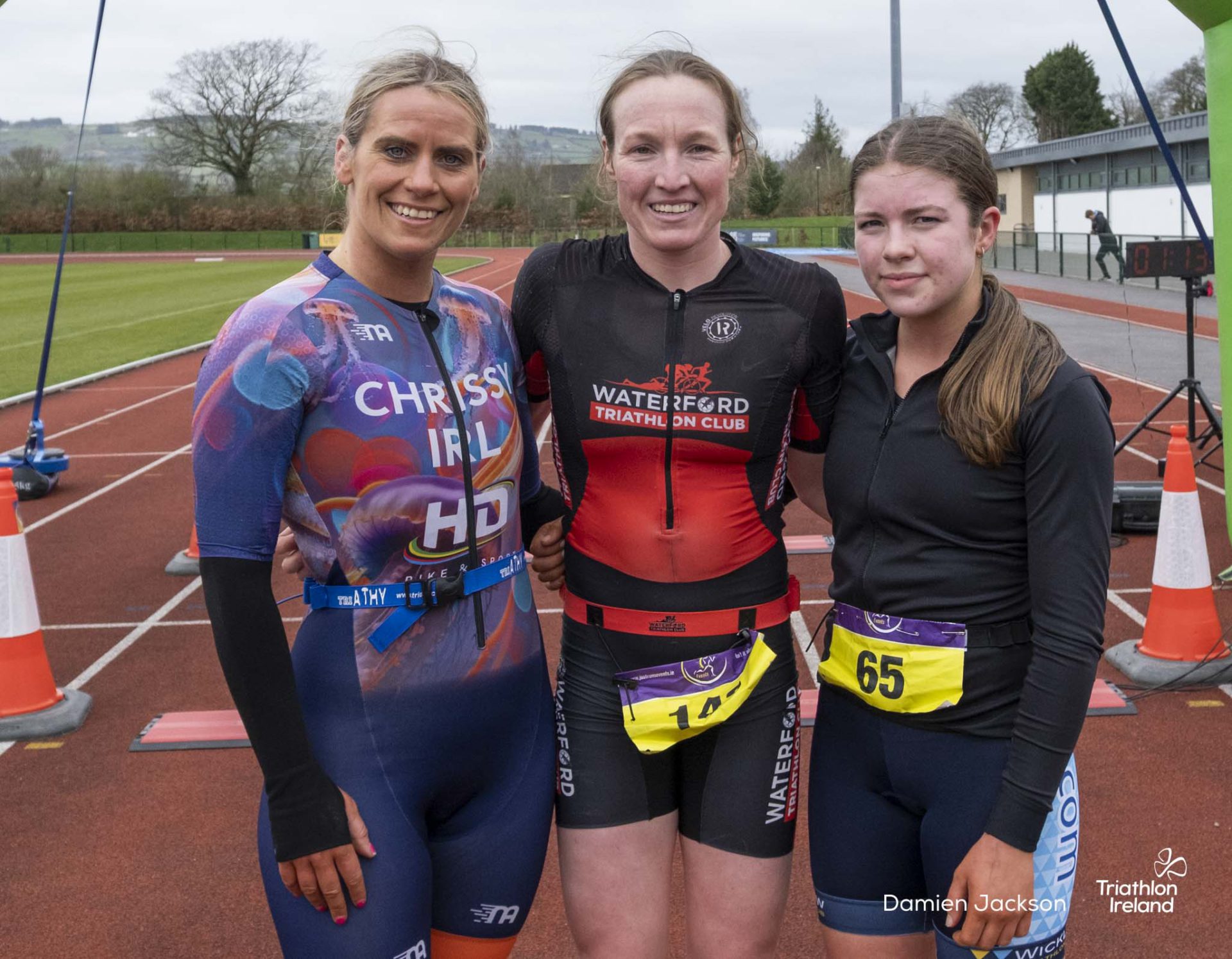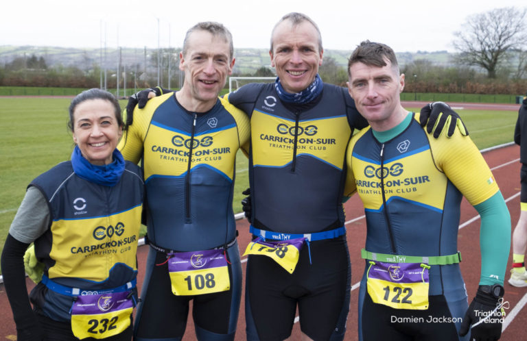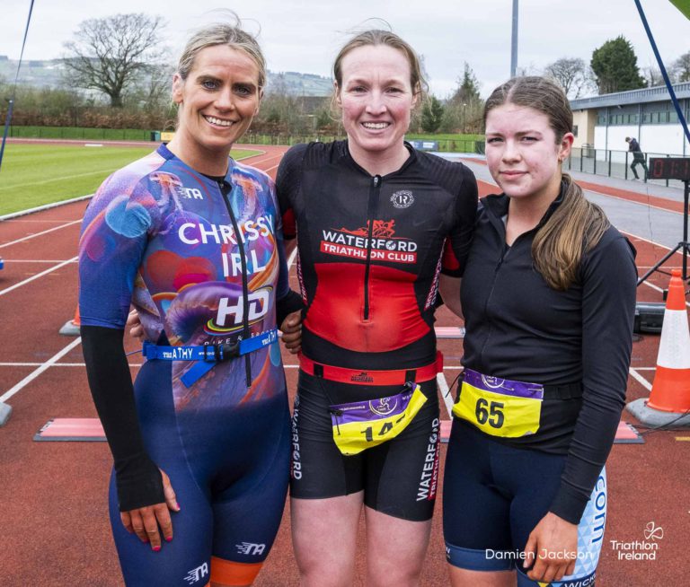 In the women’s race, Waterford Tri Club’s Aine Kinsella claimed victory with a strong performance. She completed the course in 1:09:37, with a strong cycle placing her in a leading position for the remainder of the race. Lara Buck (Wicklow Triathlon Club) secured second place with a strong run, while Chrissy Harford from Portmarnock Triathlon Club rounded out the podium after an excellent performance.