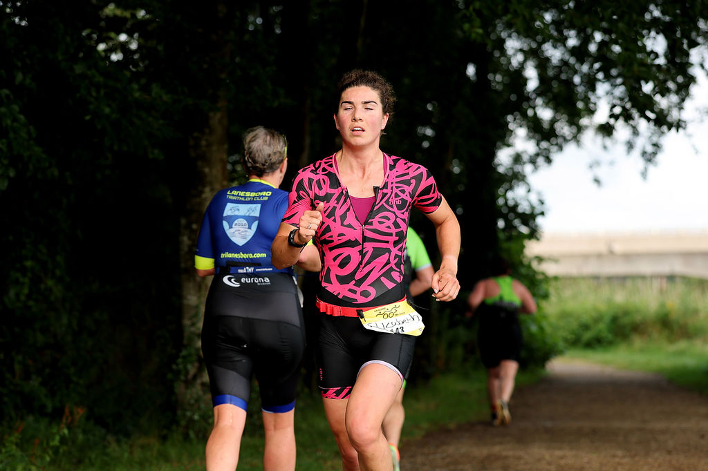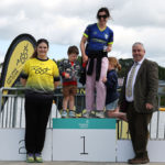 The women’s aquathlon championship carried the festival atmosphere with Carr safely securing first place in impressive style, with a comfortable 2:52 lead over closest rival Naoise O’Donnell (Galway Tri Club). Another Galway member, Laura Daly, delivered an impressive performance with a finish time of 32:43.