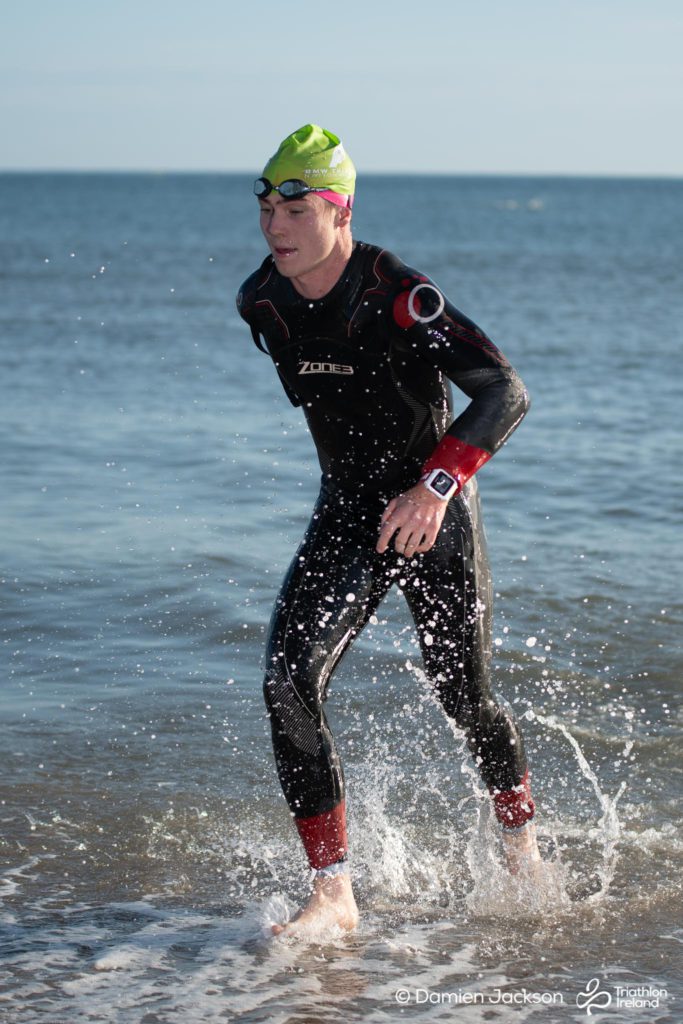 Entering the water first in the rolling start alongside Longford TC’s Ciaran Madden, the pair were together in the swim until approximately the 450m mark when Madden started to pull away.