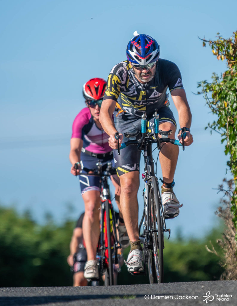 Madden exited T1 with a 20 second lead but Lyons reigned that in early on the fast bike course. On his return to T2 Eoin Lyons had built a lead of approximately two and a half minutes ahead of Ciaran Madden.