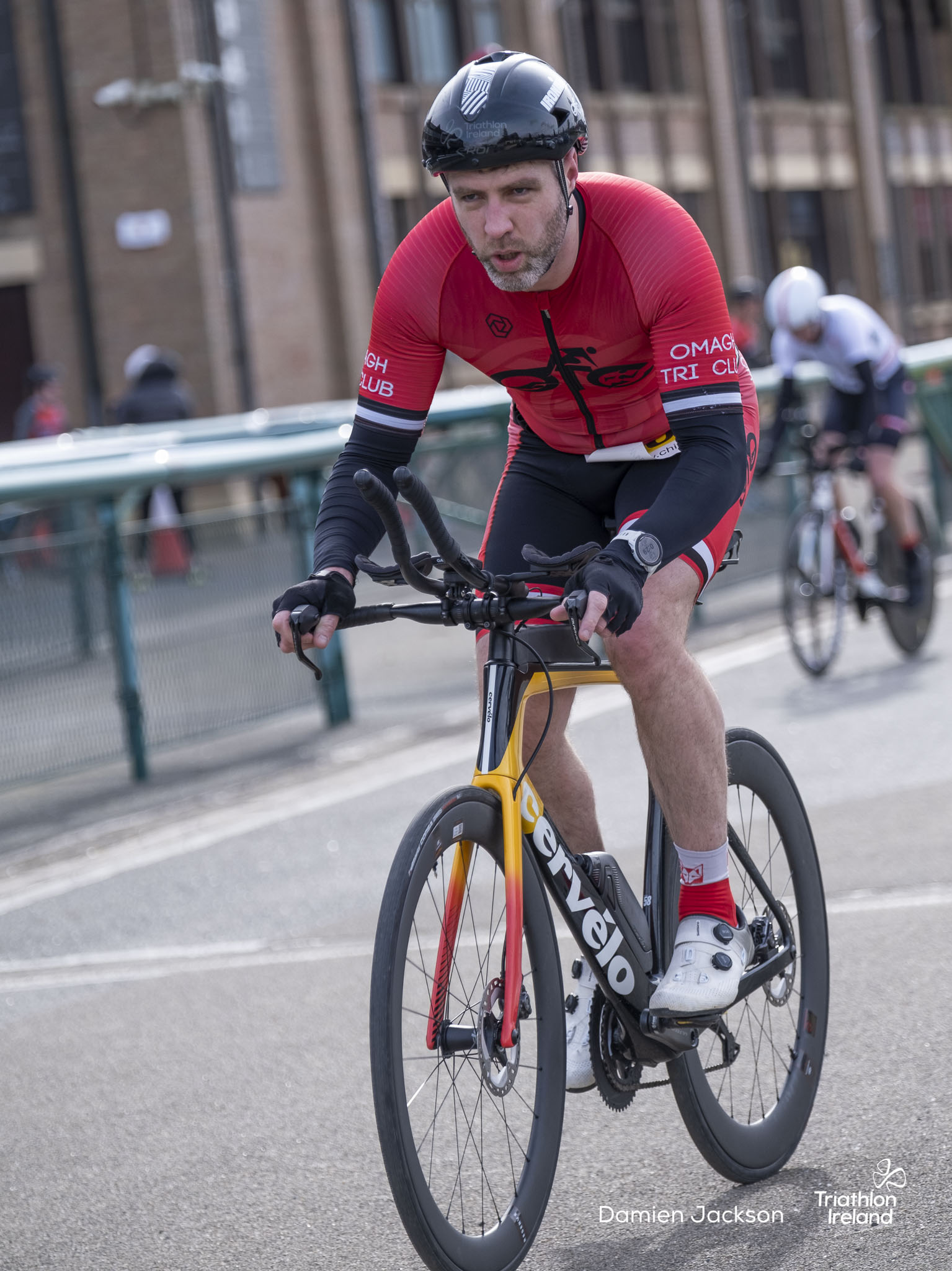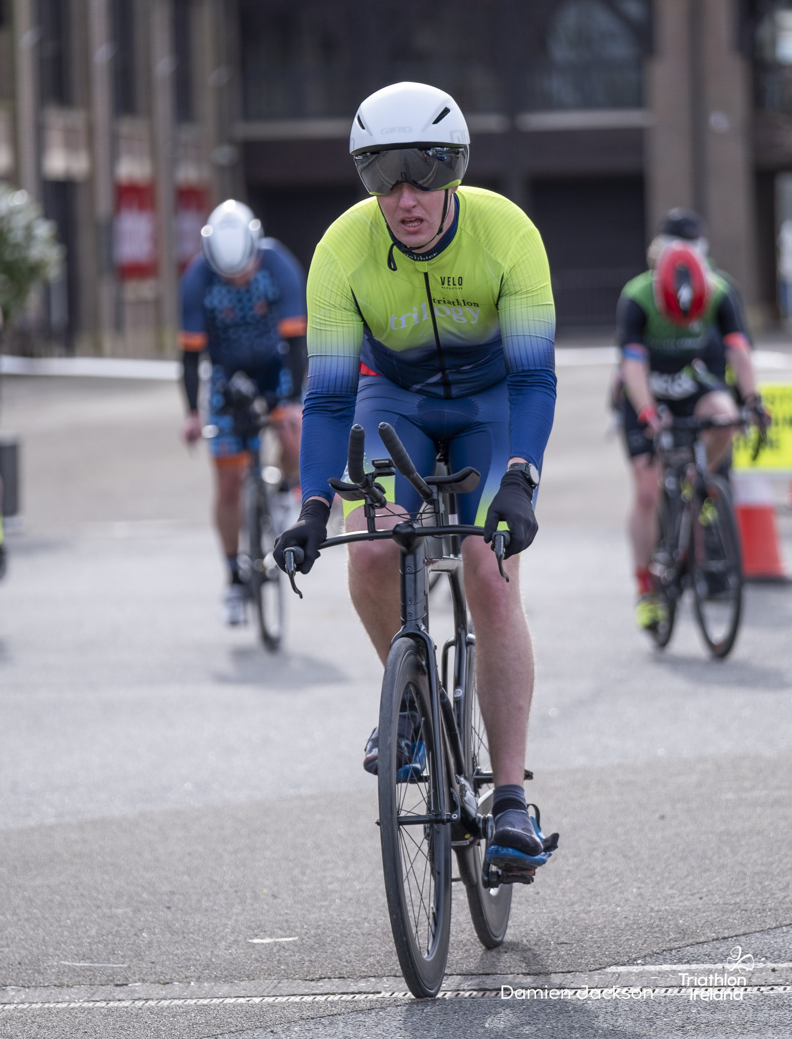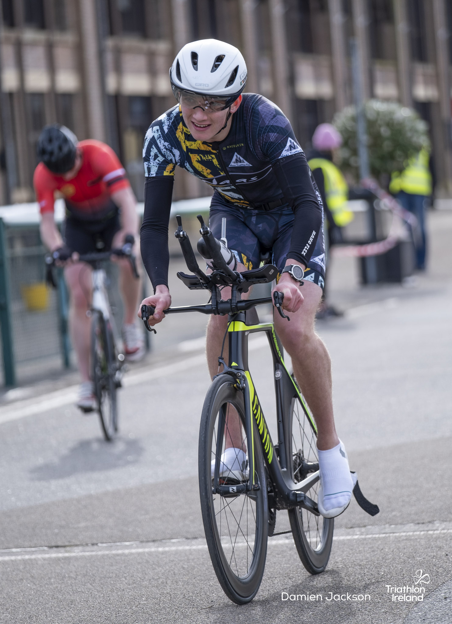 James Graham from Peninsula Triathlon Club completed the fastest cycle, of 00:30:11 and earned himself the lead position coming into T2.