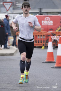 Eventual second and third placed David Higgins and Enda Bagnall both made up deficit on the bike course, and held their positions through the second run, crossing the finish line to complete the podium.