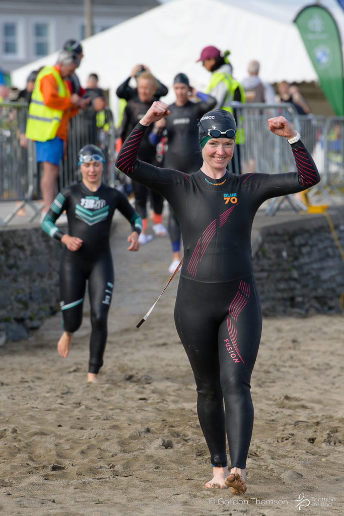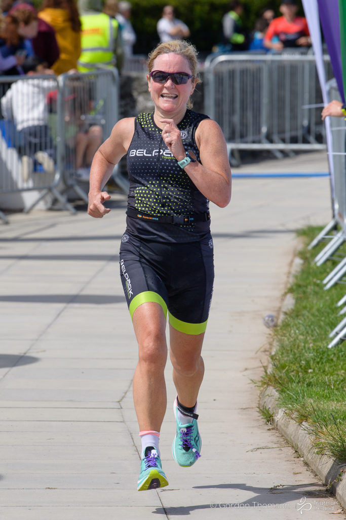 Having moved into poll position with a 1:17:20 bike split, Limerick’s Kathryn Fahy was the first to come back into T2. Fahy held over a minute’s lead to second placed Shauna Doellken O’Shea, and Mary Corless a further 90 seconds back in third.