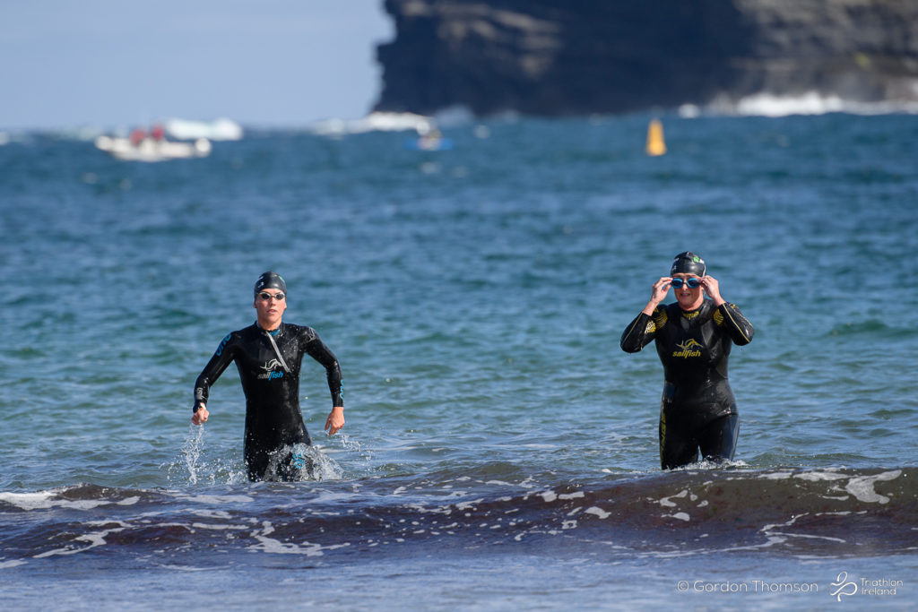 Heavy rain showers eased in time for the 9.20am race start, and Kilkee Beach filled with triathletes ready to tackle the standard distance triathlon, and supporters ready to cheer them on.