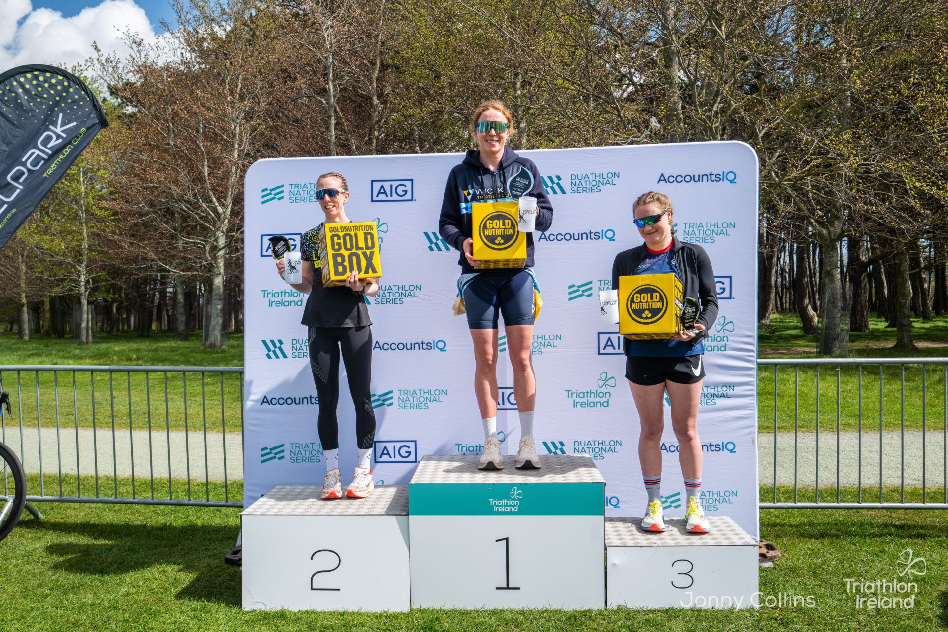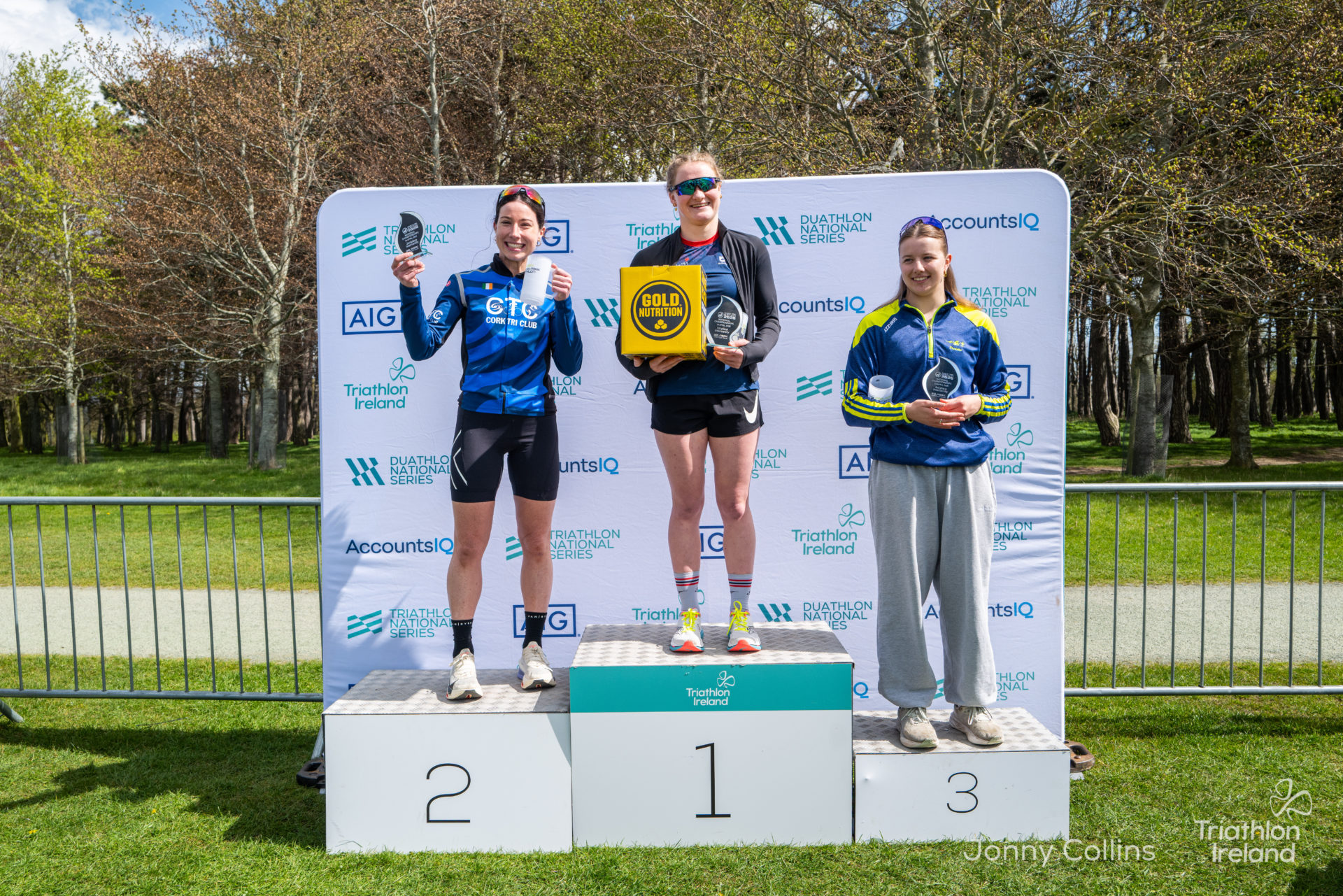 Helen Perry, winner of the Lisburn Duathlon in February continued her strong form to claim silver, while 2025 Duathlon National Champion Saoirse O’Brien came home in bronze.