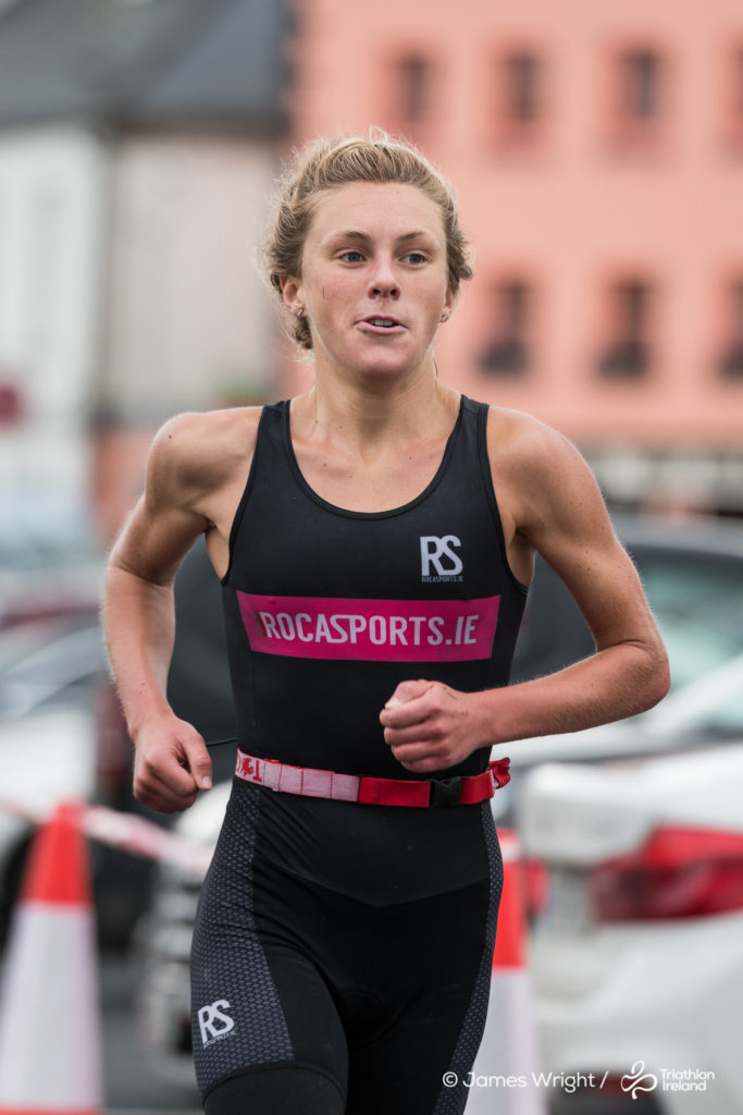 2018 Westport Triathlon winner Aichlinn O’Reilly claimed a National Champs silver for the second week in a row. In third on the road after the swim, O’Reilly closed down the small deficit to Ciaran Madden in the early stages of the quick bike course. From there on his splits were bettered only by Con Doherty. Doherty and O’Reilly entered T2 in first and second with a couple of minutes between them. That gap held fairly steady and they completed the run with a significant eight minute gap to the rest of the field.