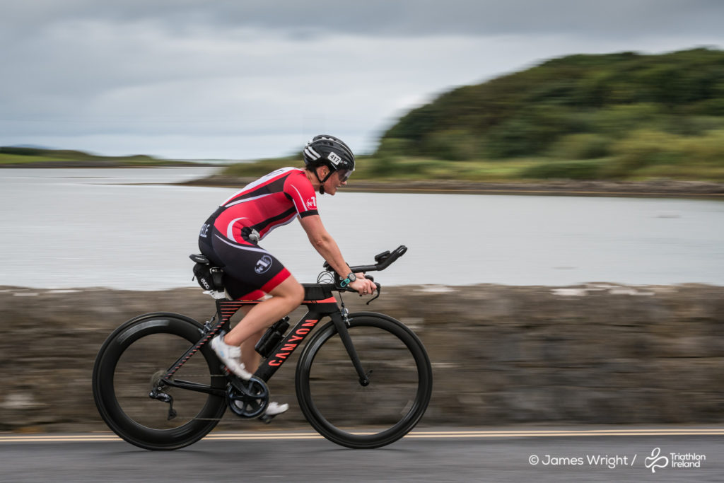 Emerging from the water second overall just 10 seconds behind Con Doherty, Maeve had the best swim split of the women’s field by almost two and a half minutes. Due to starting at the beginning of the rolling start, this meant that Gallagher was out front from the off and held that position throughout.