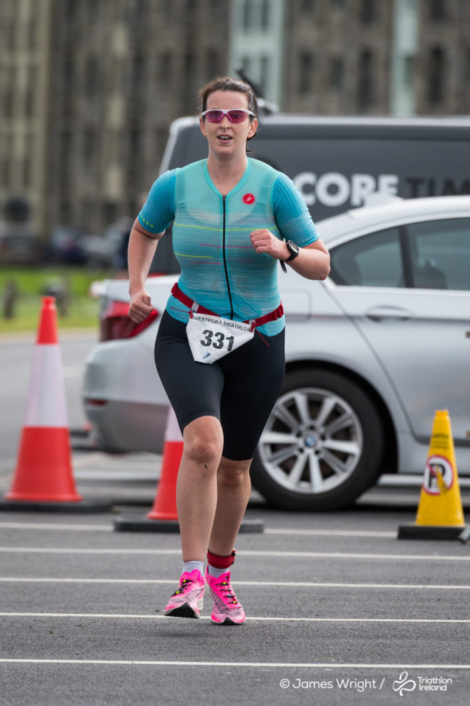 2018 Westport Triathlon winner Aichlinn O’Reilly claimed a National Champs silver for the second week in a row. In third on the road after the swim, O’Reilly closed down the small deficit to Ciaran Madden in the early stages of the quick bike course. From there on his splits were bettered only by Con Doherty. Doherty and O’Reilly entered T2 in first and second with a couple of minutes between them. That gap held fairly steady and they completed the run with a significant eight minute gap to the rest of the field.
