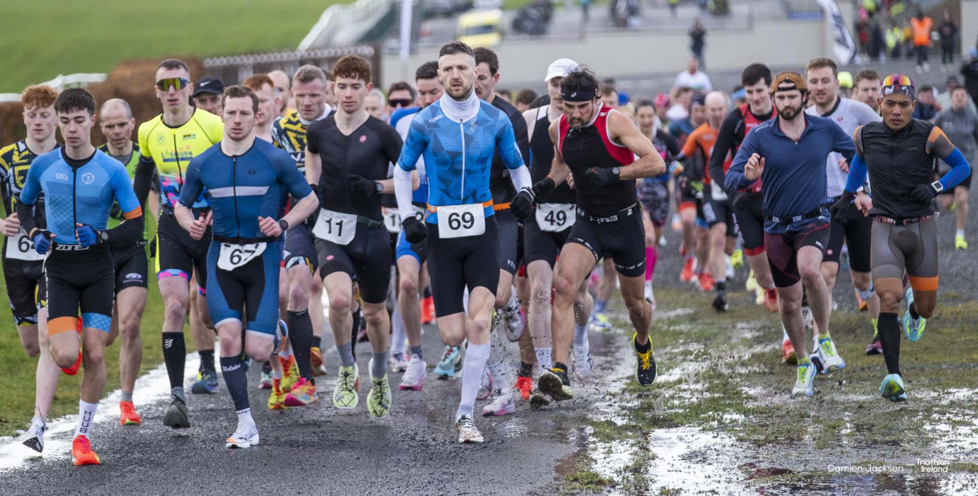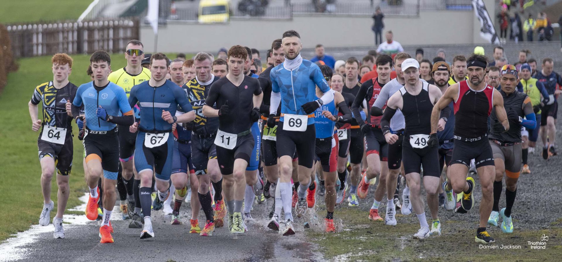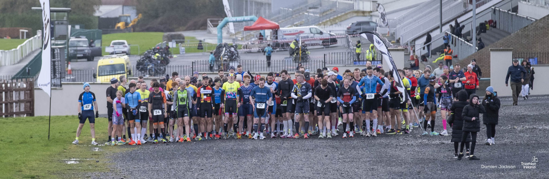 A cold but dry day at Punchestown saw the iconic racing venue transformed for multisport racing, with transition taking place in front of the grandstand. The second of Naas TC’s Galco Naas Duathlons provided another super morning of racing for the eager duathletes on the startline. A 3.2km run around Punchestown Racecourse, a 19 kilometre bike in the Kildare countryside, and a final 3.2km run lay ahead.