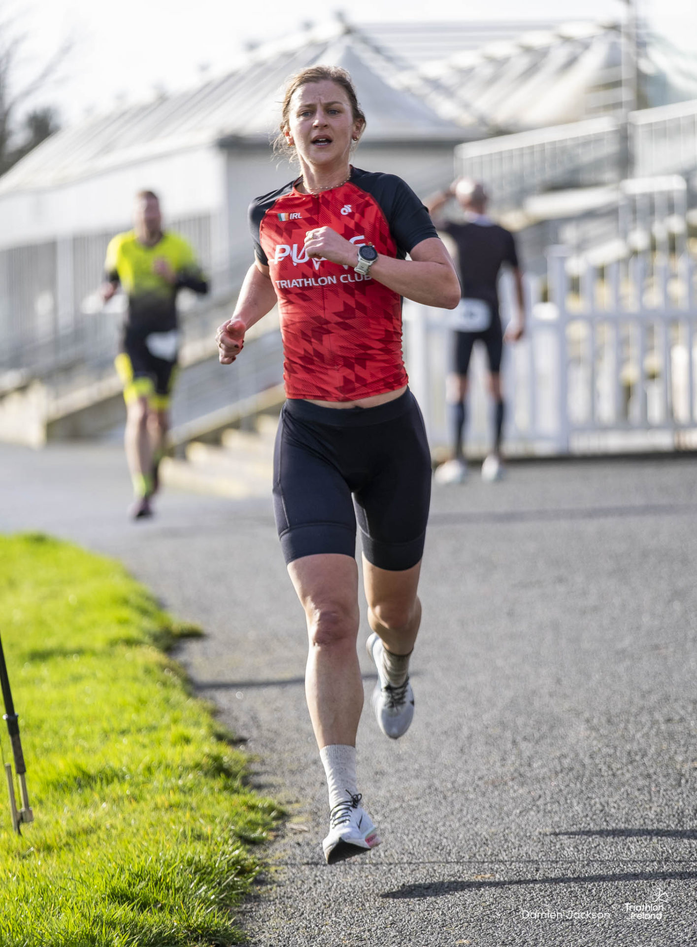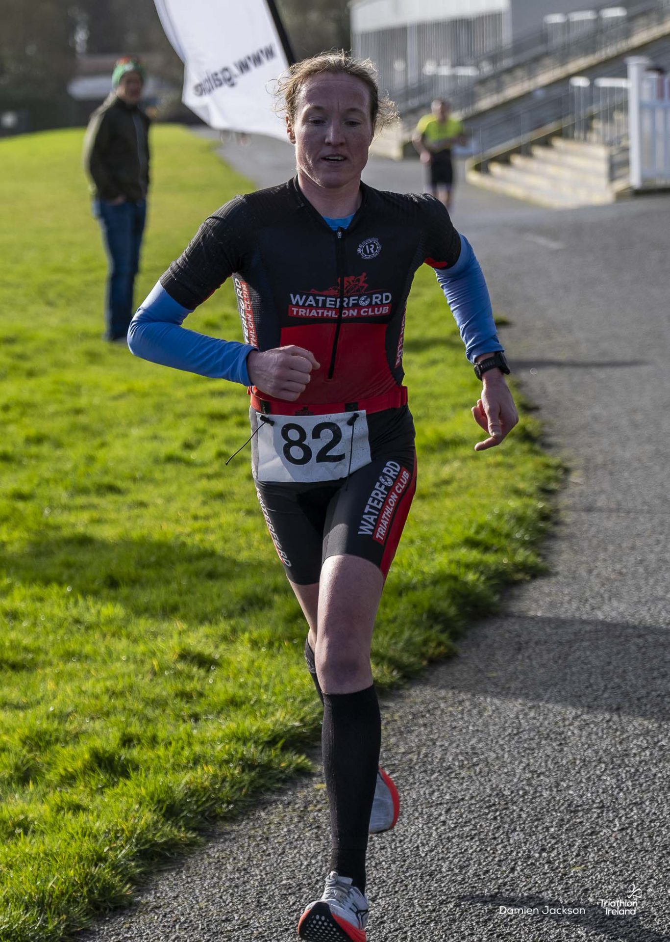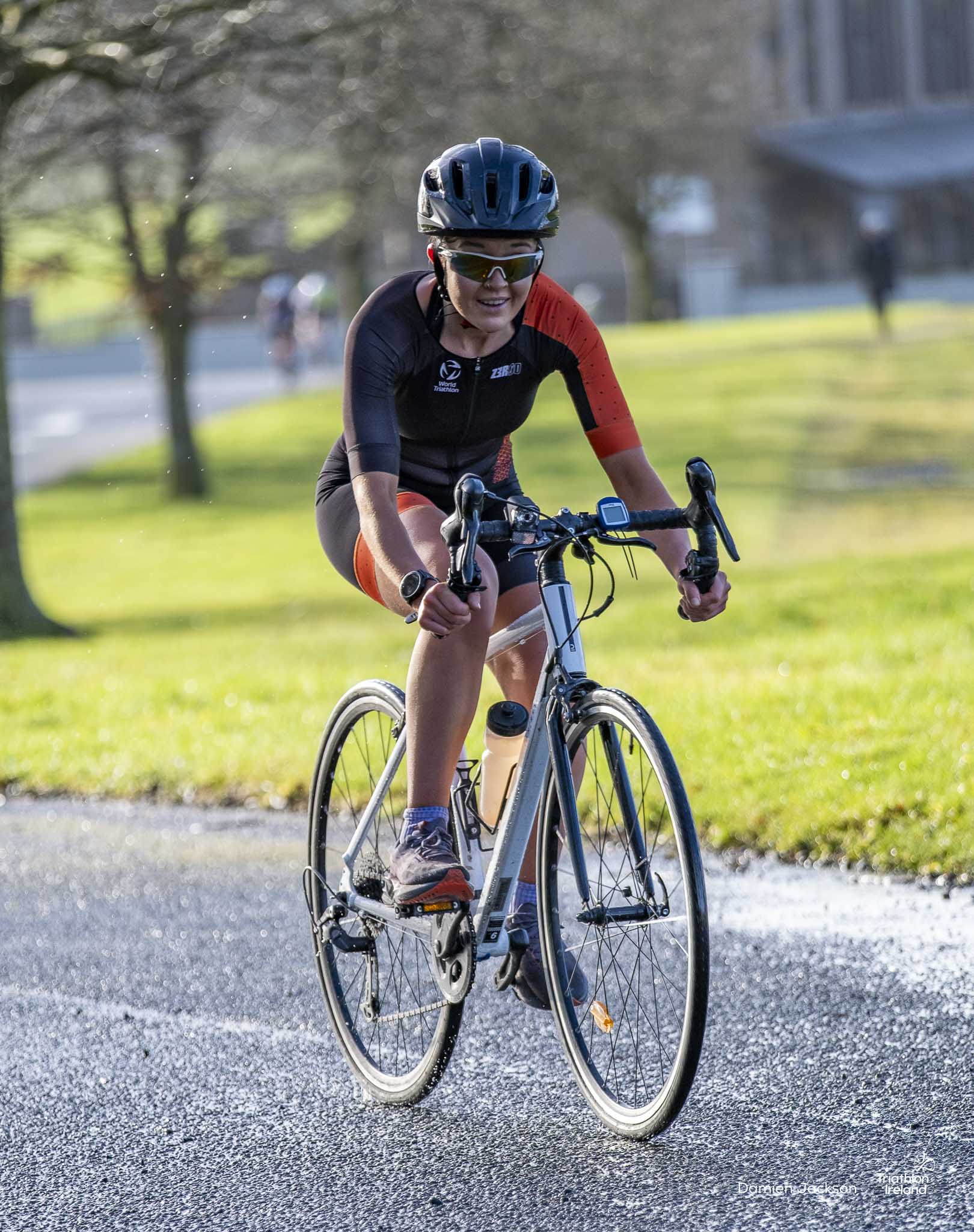 Waterford TC’s Aine Kinsella led the women’s field from the first run to the finish line. Always one to watch on a multisport start line, Kinsella is the current Duathlon National Series title holder.