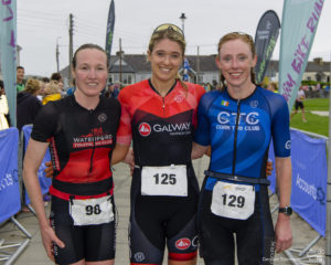 Galway TC’s Laura Daly had her first ever win in the Triathlon National Series, putting in a strong bike split to gap the field and hold on for the run. Aine Kinsella (Waterford TC) chased on the run and managed to close the deficit out on the challenging run course, ultimately running out of road for second place in Kilkee. Cork Triathlon Club’s Maura Barry made up ground after heading onto the run behind TriLakes’ Mary Corless and Limerick’s Roisin Kelleher, overtaking to secure third.