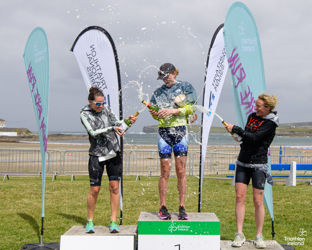 Ralf Bodamer and Wicklow Tri’s Emma O’Brien emerged the winners, David Higgins and Deirdre Casey in second. Anthony O’Brien and Hilary Hughes ran two of the quickest splits of the day around the Kilkee cliff tops to secure their spots on the National Championship podium for third place.
