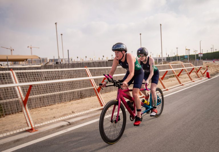 Chloe MacCombe and Aoibh Clarke have won the World Triathlon Para Cup Abu Dhabi.