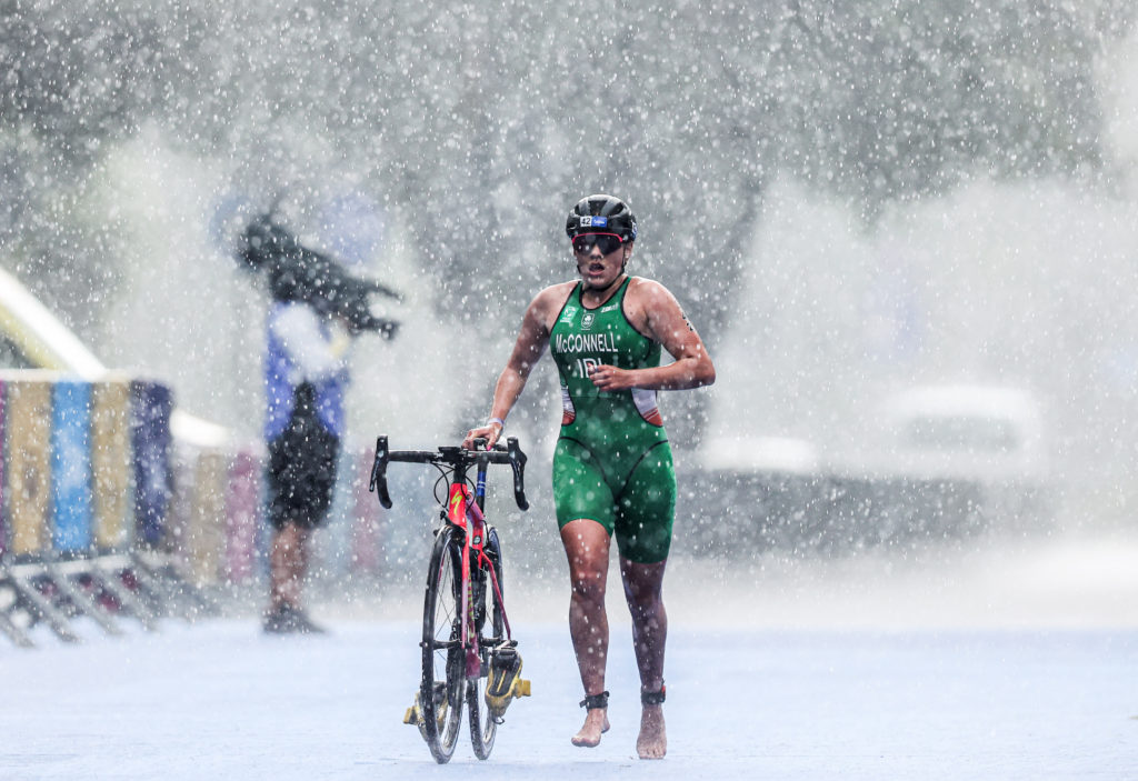 McConnell, who is known for her strong swimming background, emerged from the lake in seventh position. This put her in in the front pack, and in a good place for the remainder of the race. However, thunderstorms arrived mid-way through the bike bringing about slippery and dangerous conditions meaning the Irish triathlete dropped from the front pack with two laps remaining.