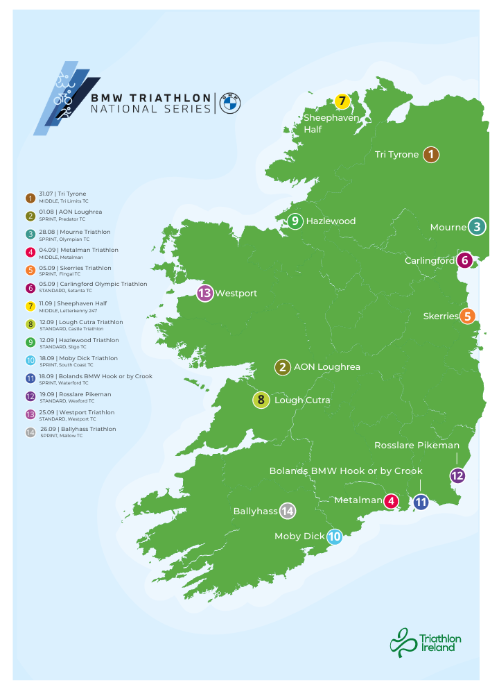 - Metalman Triathlon and Skerries Triathlon are being added to the series – this will bring the number of races back up from 12 to 14 and give more than 800 people a better opportunity to score in the series.