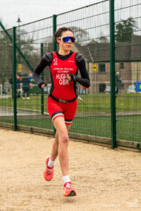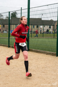 With two of the fastest run splits of the field (bettered only by eventual fourth placed Zoe Hughes), Aine Kinsella and Megan Roberts were in a battle for the silver and closing the gap to first placed Saoirse O’Brien at the same time. Kinsella managed to move into second on the closing lap and, in an exciting closing hundred metres just eight seconds separated the first three women.