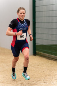 The out and back bike course saw some movement in the field with Saoirse O’Brien, Megan Roberts and Aine Kinsella as the first three off the bike and into T2. It came right down to the final run to decide the podium places.