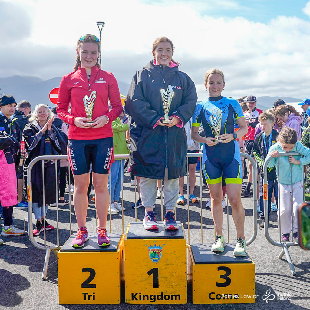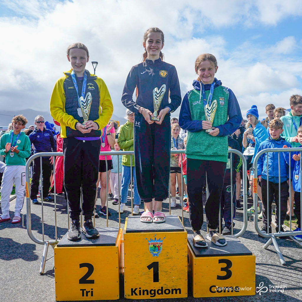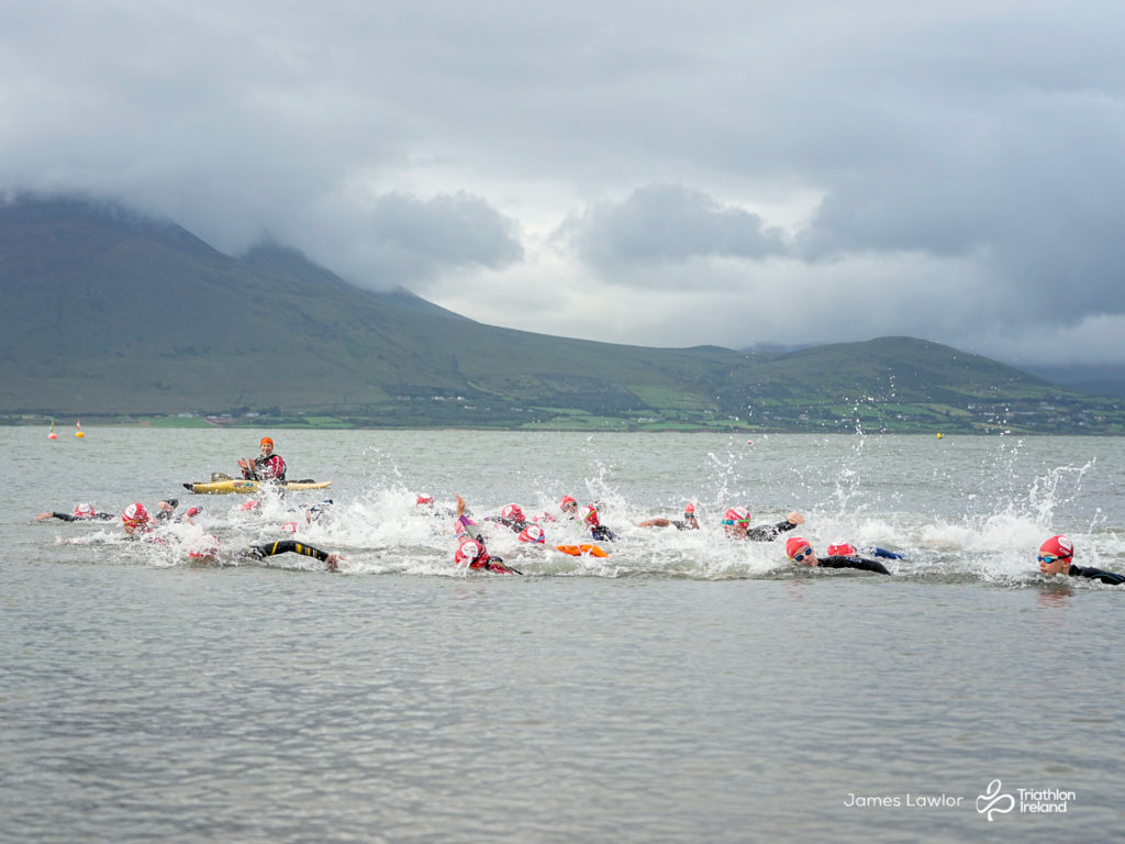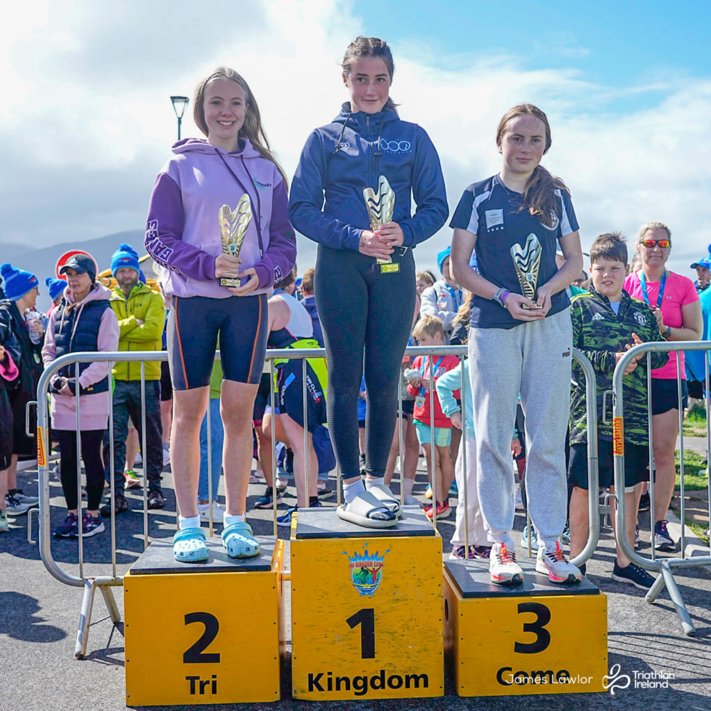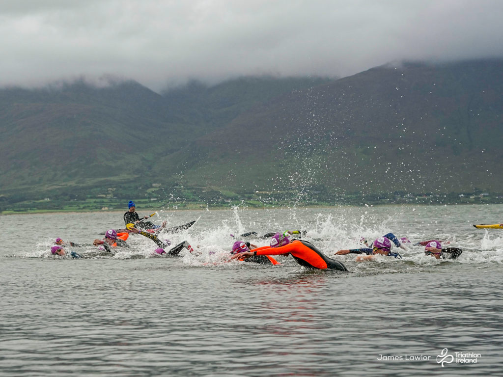 A day of four seasons in one race greeted the eager athletes. Over 100 young people took on a sea swim, road cycle and run, around the fabulous new green way in Fenit Co. Kerry.