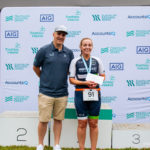 Emma O’Brien clocked the fastest bike split of the day to close the gap, while Becky Woods surged through the field to claim the final podium position.