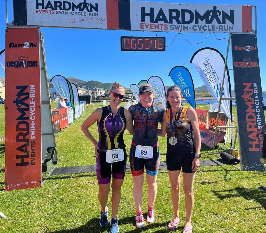 Tralee Tri Club’s Ailis Brosnan showed her strength on the run, moving further up the field on each lap and reaching third in the closing stages of the race, finishing in 6:30:26.
