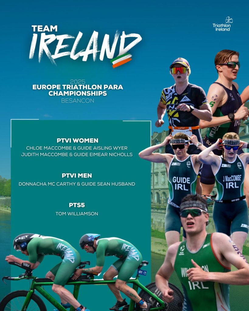 Team Ireland will be represented by a strong team of seven athletes, including three PTVI pairings, at the 2025 European Para Triathlon Championships in Besançon, France. Racing is on Saturday, 14th June.