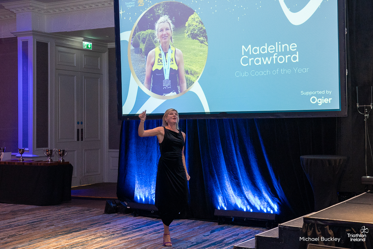 Triathlon Ireland Club Coach of the Year for 2025 goes to Madeline Crawford from Down Triathlon Club. This award recognises a Triathlon Ireland qualified club coach, working with either adults or juniors, who has gone above and beyond to support and beyond to support their athletes and wider community in a safe, fun and athlete centred environment.