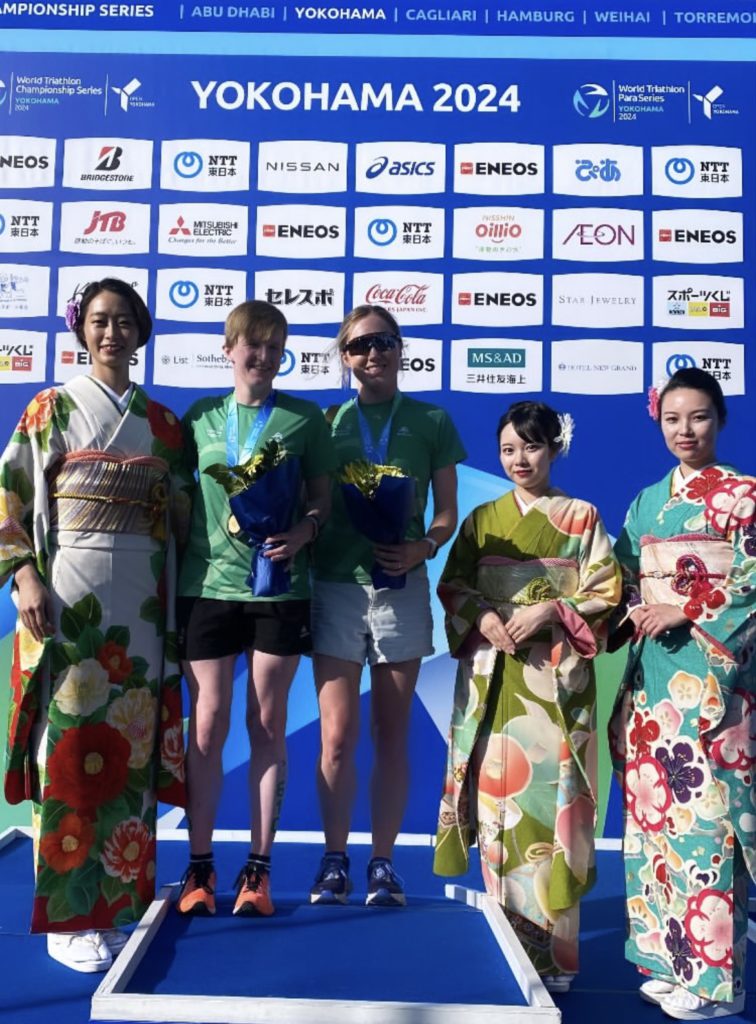 Chloe MacCombe and her guide Catherine Sands produced a strong overall performance to secure a podium position in the Women’s PTVI category at the 2024 World Triathlon Para Series Yokohama. The duo were closely followed by Judith MacCombe and her guide Eimear Nicholls who, despite mechanical issues with their tandem, placed 4th, with only seven seconds between the Irish athletes and their guides.